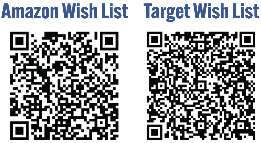 No time to stop by a branch? Scan the QR Codes or click the links below to shop online from Holy Cross Health's wish lists by Dec. 5. Your gift will be delivered to families right here in our community who need it most.